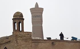 Виды Бухары. Жанровая фотография. Минарет Калян и реставрационные работы мечети Клян.