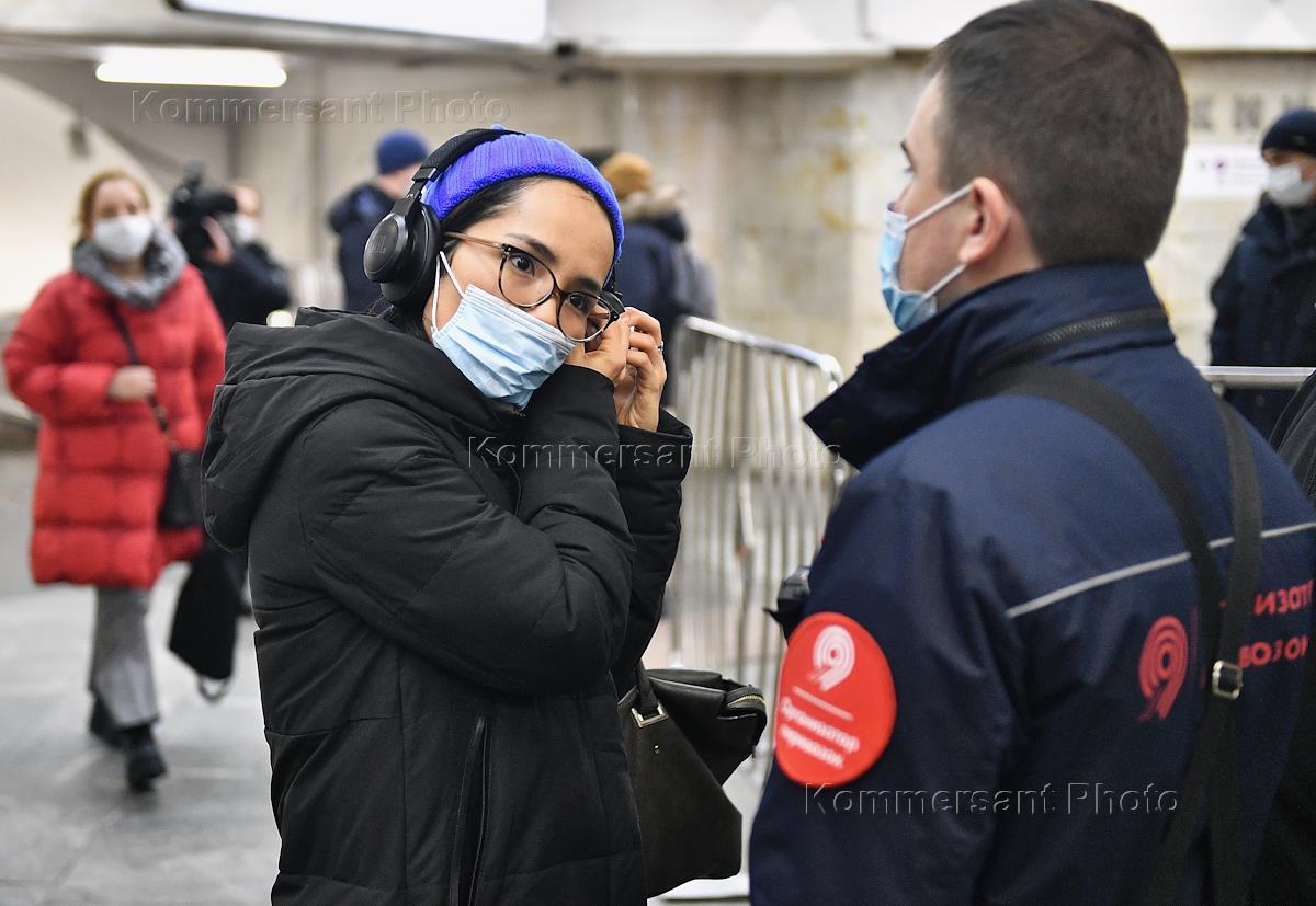 Проверка масочного режима на наземном транспорте - трамваи №50 и №7 и в вестибюле метро Пушкинская.