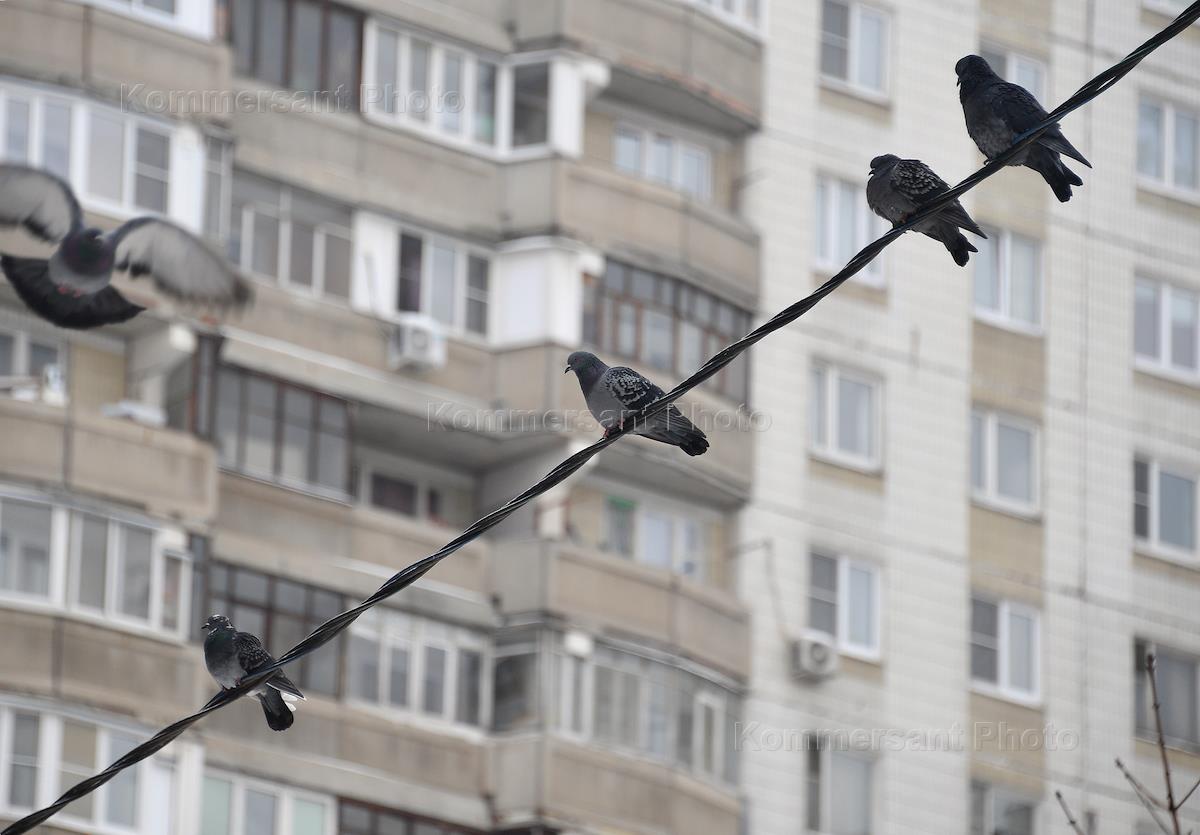 Виды Москвы. Жанровые фотографии. Голуби на проводе.