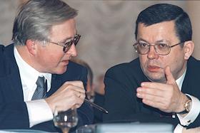 Председатель Центрального банка России Виктор Геращенко (слева) и председатель Правительства России…