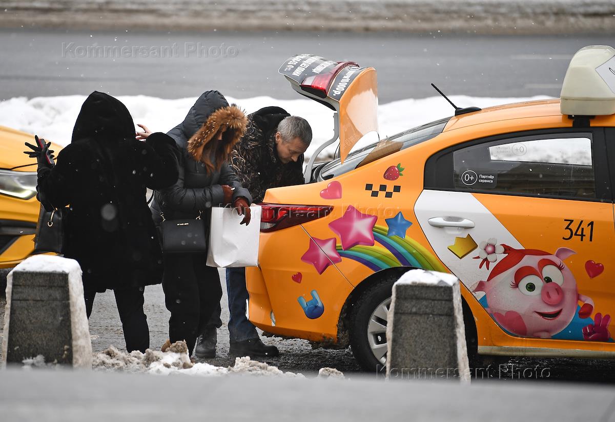 Genre photography. Taxi passengers on the square near the Leningradsky railway station.