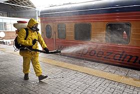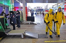 Disinfection of the Leningradsky railway station and the surrounding area.
