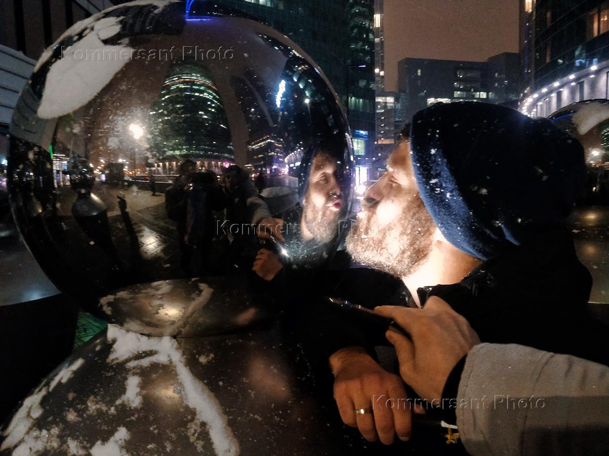Жанровая фотография. Люди фотографируются у инсталляции "Эхо" канадского художника Хусама Чайя в…
