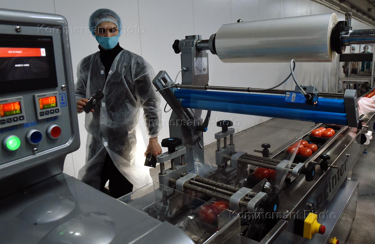 Тепличный комбинат "Белогорский" по производству свежих томатов во время начала фасовки нового сбора…