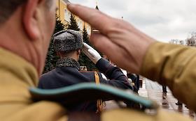 Общество Возложение венков и цветов к Могиле Неизвестного Солдата, Мавзолею Владимира Ленина и могиле Иосифа Сталина в ознаменование 104-й годовщины со дня образования Рабоче-крестьянской Красной Армии у Кремлевской стены.