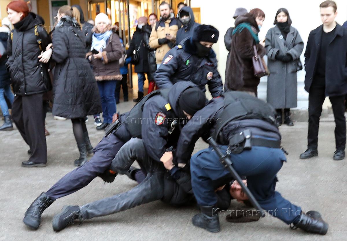 Антивоенная акция движения "Время" "Нет войне!" на Невском проспекте у Гостиного двора.