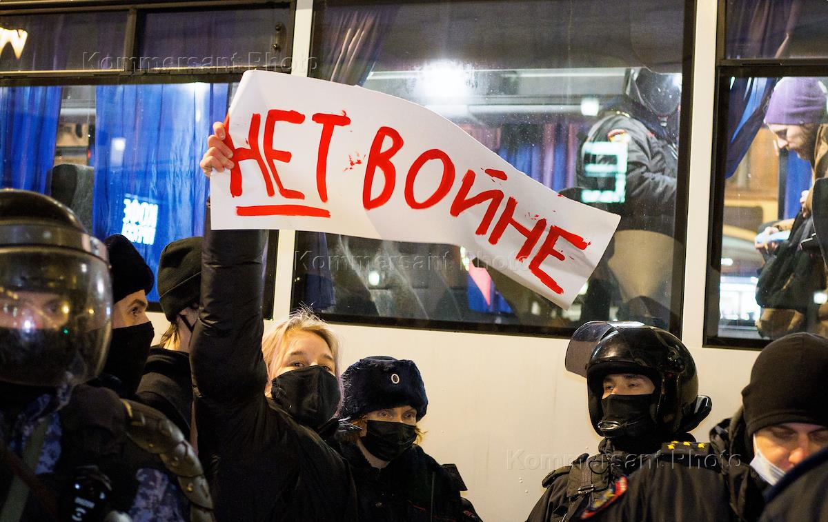 Акция против специальной военной операции на Украине на Невском проспекте у Гостиного двора в Санкт-Петербурге.