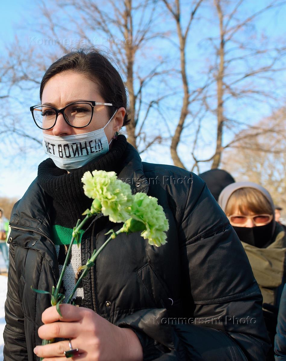Акция памяти политика Бориса Немцова у Соловецкого камня на Троицкой площади Петроградской стороны.