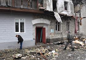 Общество Политическая обстановка в ДНР в период проведения специальной военной операции Вооруженных Сил России на Украине. Донецк. Дом по адресу Абакумова 51, пострадавший в результате обстрела (3-27) и дом на улице Кирова (28).
