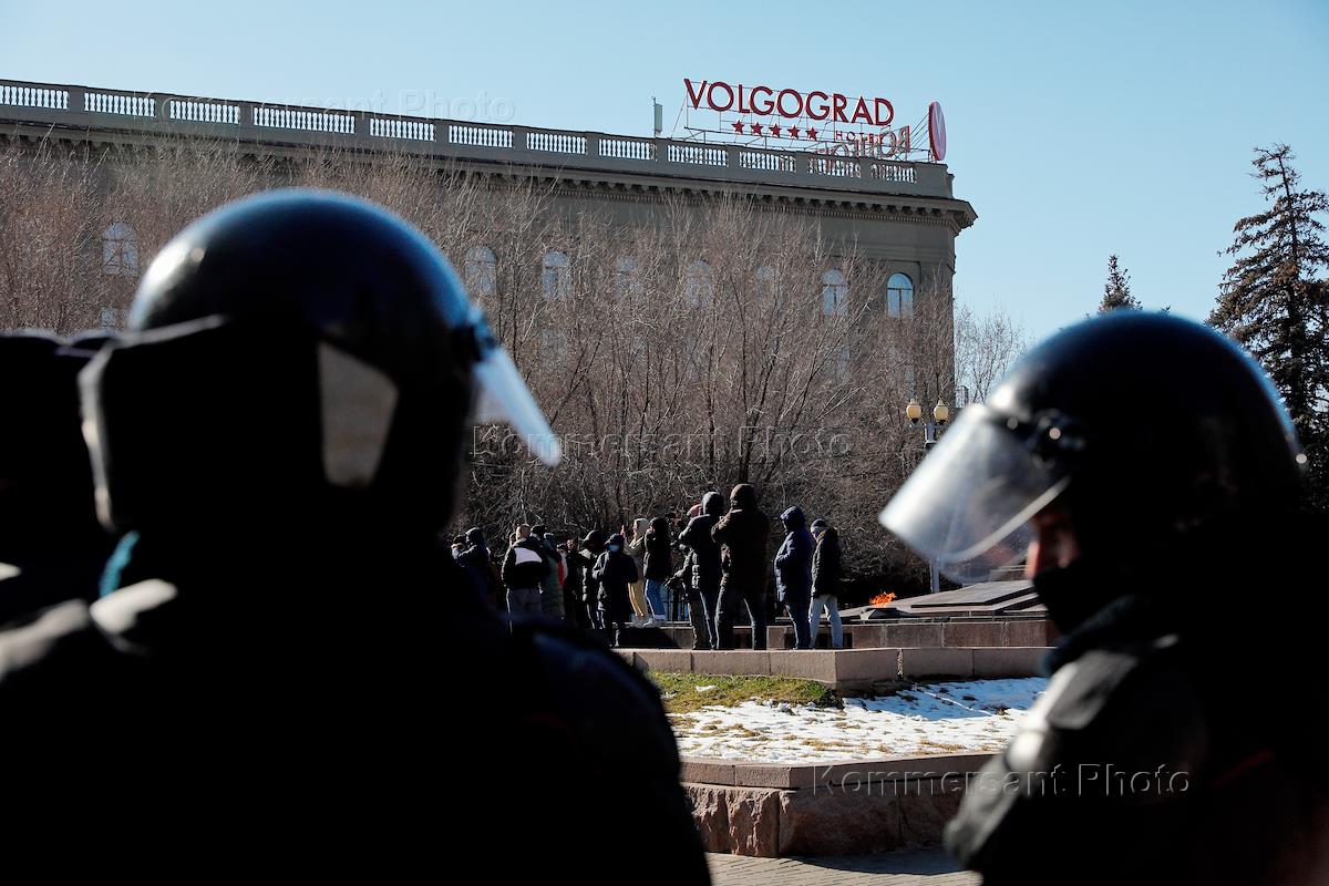 Несогласованная акция против специальной военной операции на Украине в Волгограде. Сотрудники…