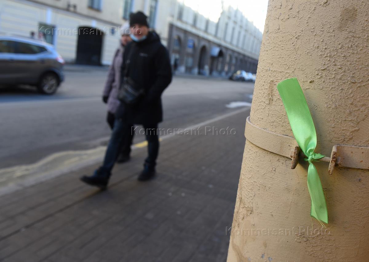 Акции против специальной военной операции на Украине в Санкт-Петербурге. Флеш-моб "Зеленая лента" в…