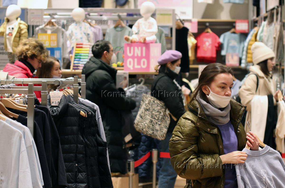 Работа магазина Uniqlo в торговом центре "МЕГА Казань". Жанровые фотографии. Посетители в магазине.…