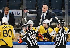 Спорт Континентальная хоккейная лига (КХЛ). Чемпионат сезона 2021/22. 1/4 финала - Запад. Матч между командами "Динамо" (Москва) - "Северсталь" (Череповец) на стадионе "ВТБ Арена".