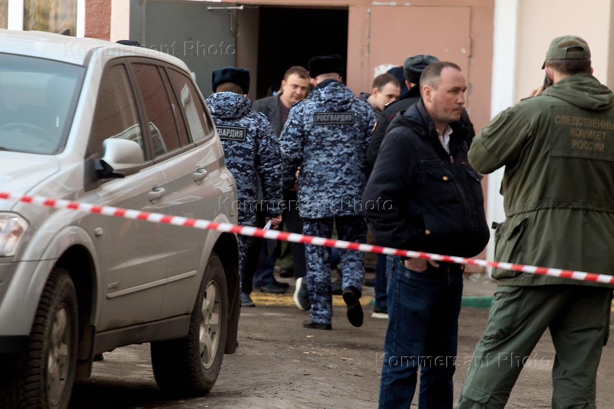 Сотрудники правоохранительных органов на месте убийства директора медицинской компании "Медстом"…