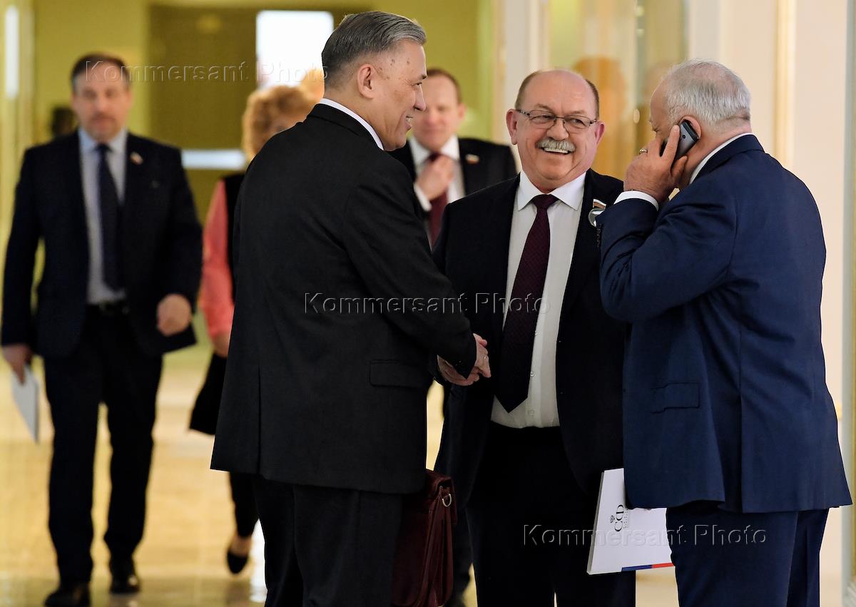 Пленарное заседание Совета Федерации России. Сенаторы перед заседанием Совета Федерации России.