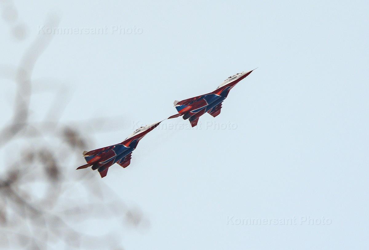 Авиационная техника в небе над Звенигородом. Истребитель МИГ-29 авиационной группы "Стрижи".