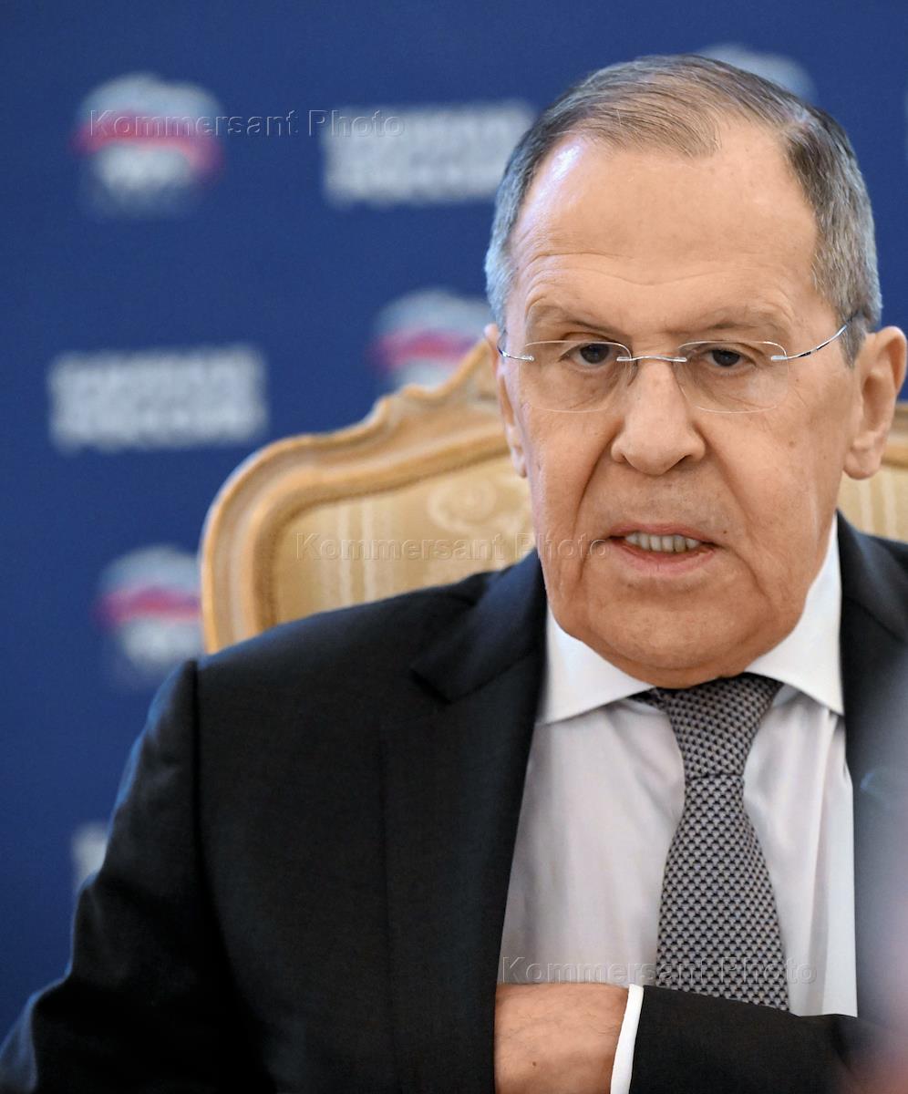Министр иностранных дел России Сергей Лавров во время заседания Комиссии партии "Единая Россия" по…