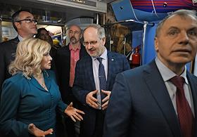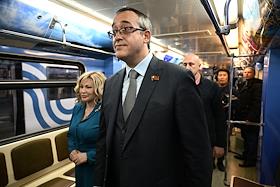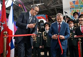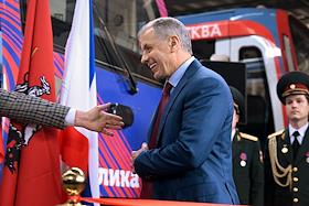 Общество Торжественная церемония запуска тематического поезда "Республика Крым и город Севастополь" на Арбатско-Покровскую линию Московского метрополитена в электродепо "Красная Пресня".