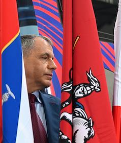 Торжественная церемония запуска тематического поезда "Республика Крым и город Севастополь" на…