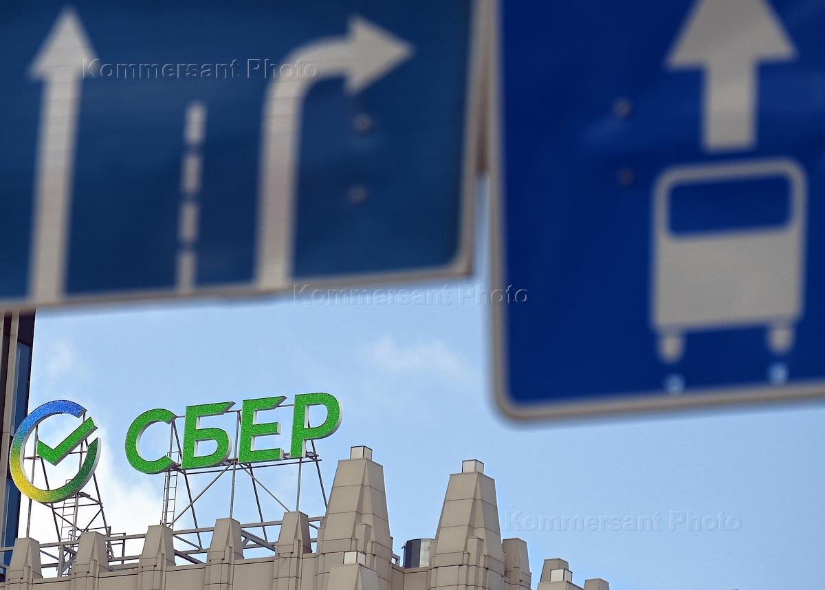Виды Москвы. Жанровая фотография. казатели дорожнжой разметки на фоне здания Сбербанка в Оружейном…