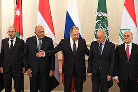 Политика Министр иностранных дел Российской Федерации Сергей Лавров и министры иностранных дел стран-членов контактной группы по Украине Организации Лиги арабских государств (Алжир, Египет, Иордания, Ирак, Судан),а также генеральный секретарь Лиги арабских государств(ЛАГ) Ахмед Абуль Гейт во время встречи в Доме приемов МИД РФ.