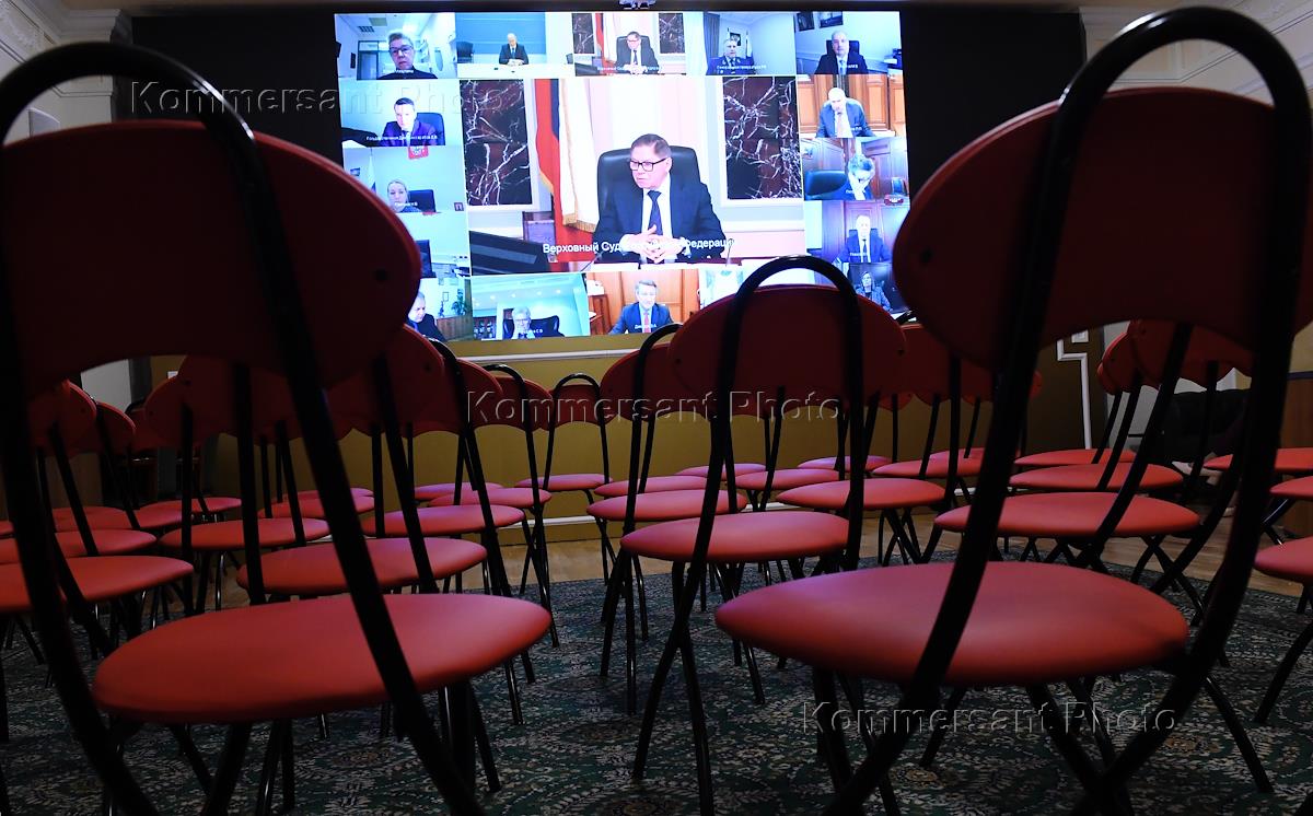 Заседание Пленума Верховного Суда (ВС) России. Судья Верховного суда Анатолий Першутов (на экране,…