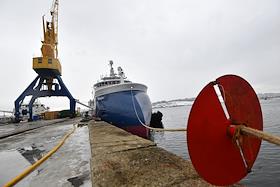 Пресс-тур на предприятия рыбопромышленного холдинга "Norebo". Рыболовный траулер у причала.