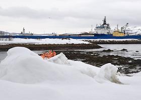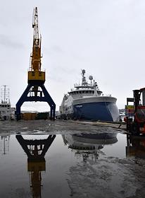 Пресс-тур на предприятия рыбопромышленного холдинга "Norebo". Траулер "Кильдин" у причала береговой…