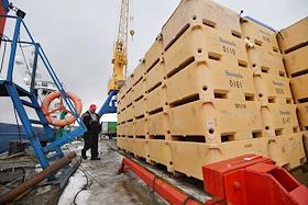 Пресс-тур на предприятия рыбопромышленного холдинга "Norebo". Рыба в пластиковых ящиках во время…