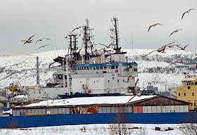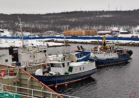 Пресс-тур на предприятия рыбопромышленного холдинга "Norebo". Траулер "Кильдин" у причала береговой…
