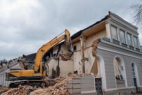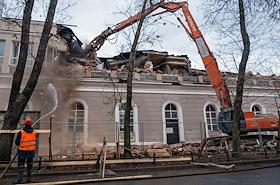 Cнос здания манежа лейб-гвардии Финляндского полка на Васильевском острове. Работы по сносу здания.
