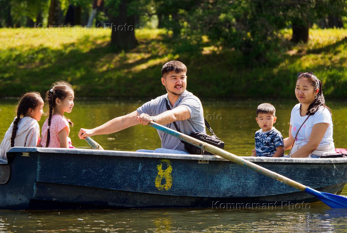 Жанровая фотография. Лето в парке Победы. Посетители парка катаются на лодках.