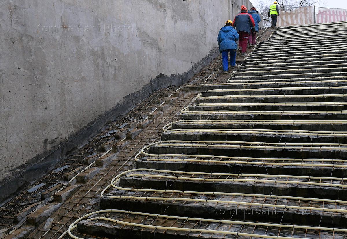 Строительство станции метрополитена "Сокольники" Большой кольцевой линии (БКЛ). Лестница с греющимся…