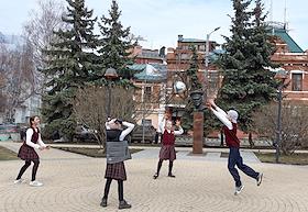Жанровая фотография. Школьники играют в баскетбол на площади у здания Нижегородского областного…