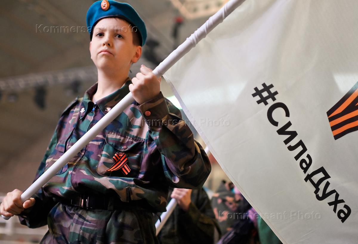Фестиваль единоборств на стадионе "Красная звезда". Девушки с флагами с символом Z и надписью…