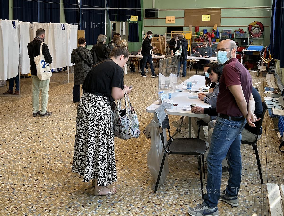 Выборы президента Франции. Второй тур. Избиратели во время голосования на избирательном участке.