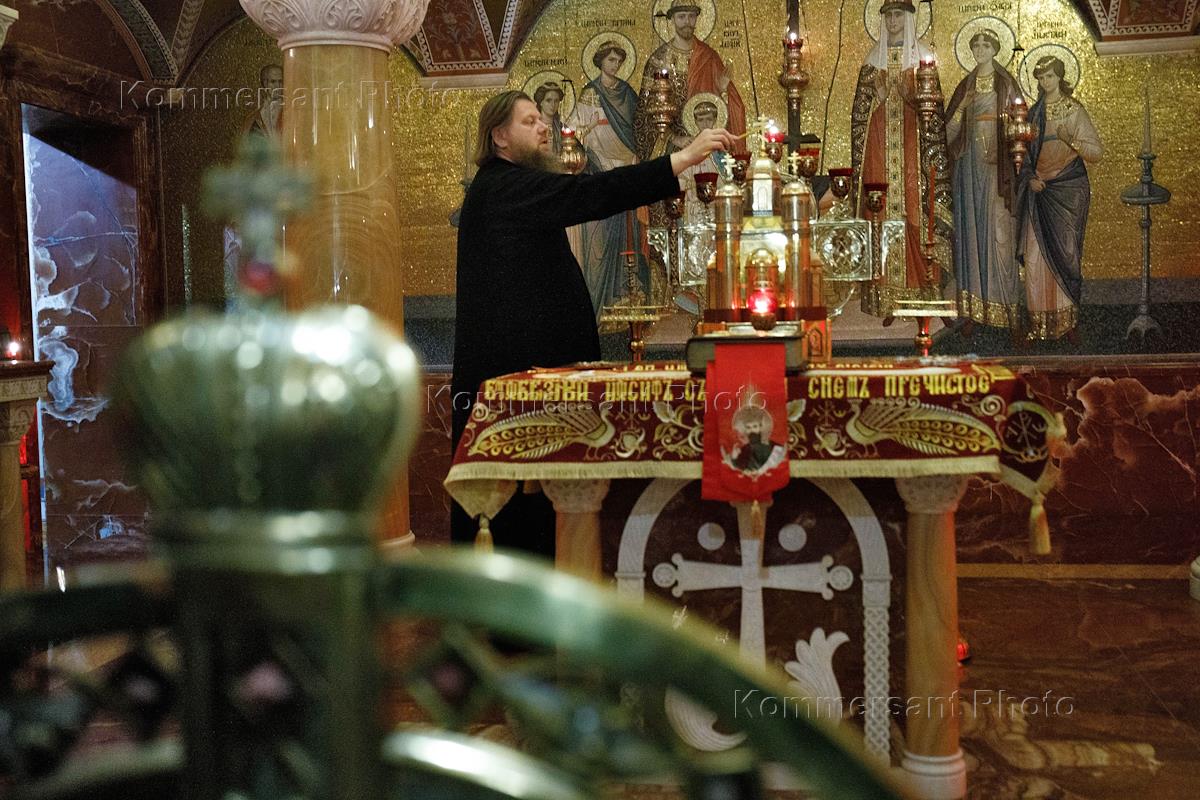Алтарь в Храм-Памятнике на Крови, построенном на месте расстрела императора России Николая II и его…