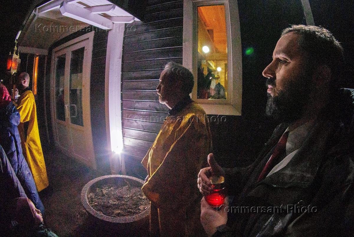 Пасхальное богослужение в храме Святых Петра и Павла в поселке Новая Ижора. Жанровая фотография.…