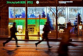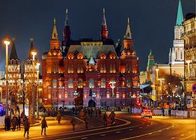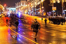 Виды Москвы перед началом ночной репетиция парада Победы без техники. Тверская улица.