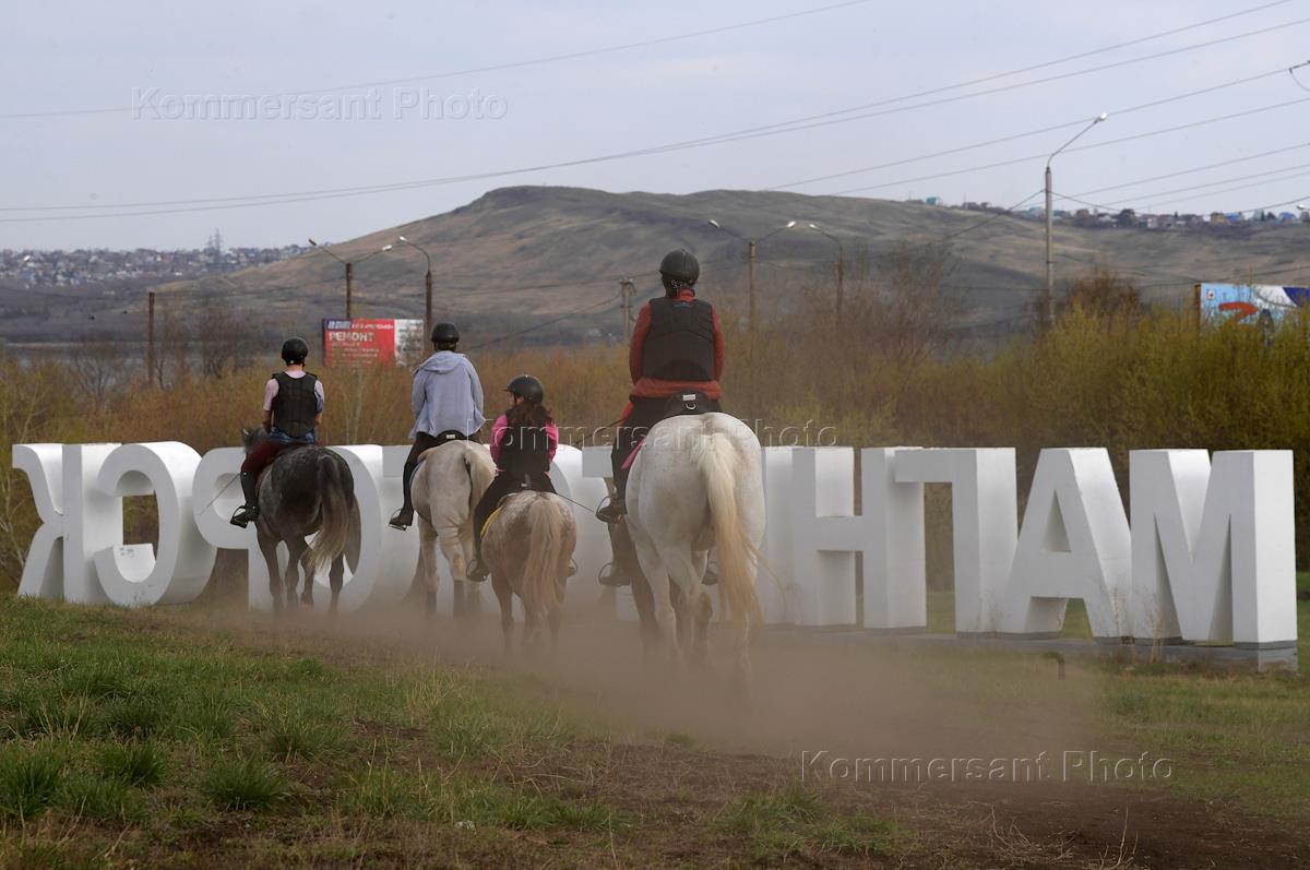 Виды Магнитогорска. Жанровая фотография. Местные жители во время конной прогулки.