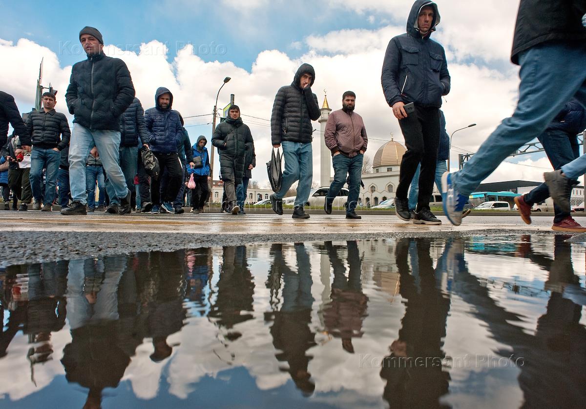 Еженедельная молитва в квартальной мечети имени Джафара Насибулловича в Коломягах. Верующие перед…