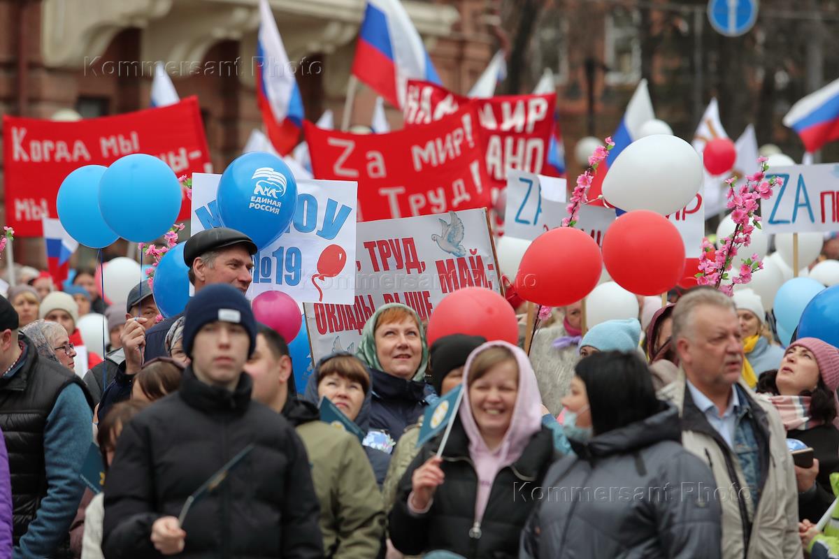 Всероссийская акция, посвященная Дню международной солидарности трудящихся. Участники во время…
