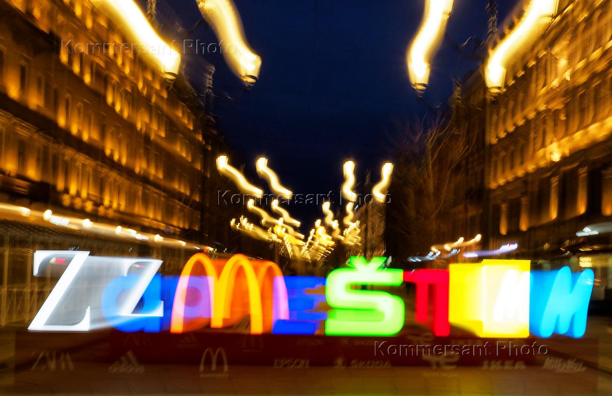 Жанровая фотография. Надпись Zamestim, собранная из латинских букв наименований брендов, покинувших…