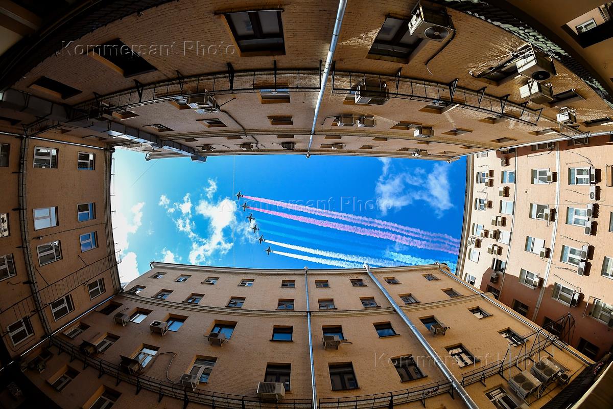 Репетиция воздушной части Парада Победы, посвященного 77-ой годовщине Победы в Великой Отечественной войне.