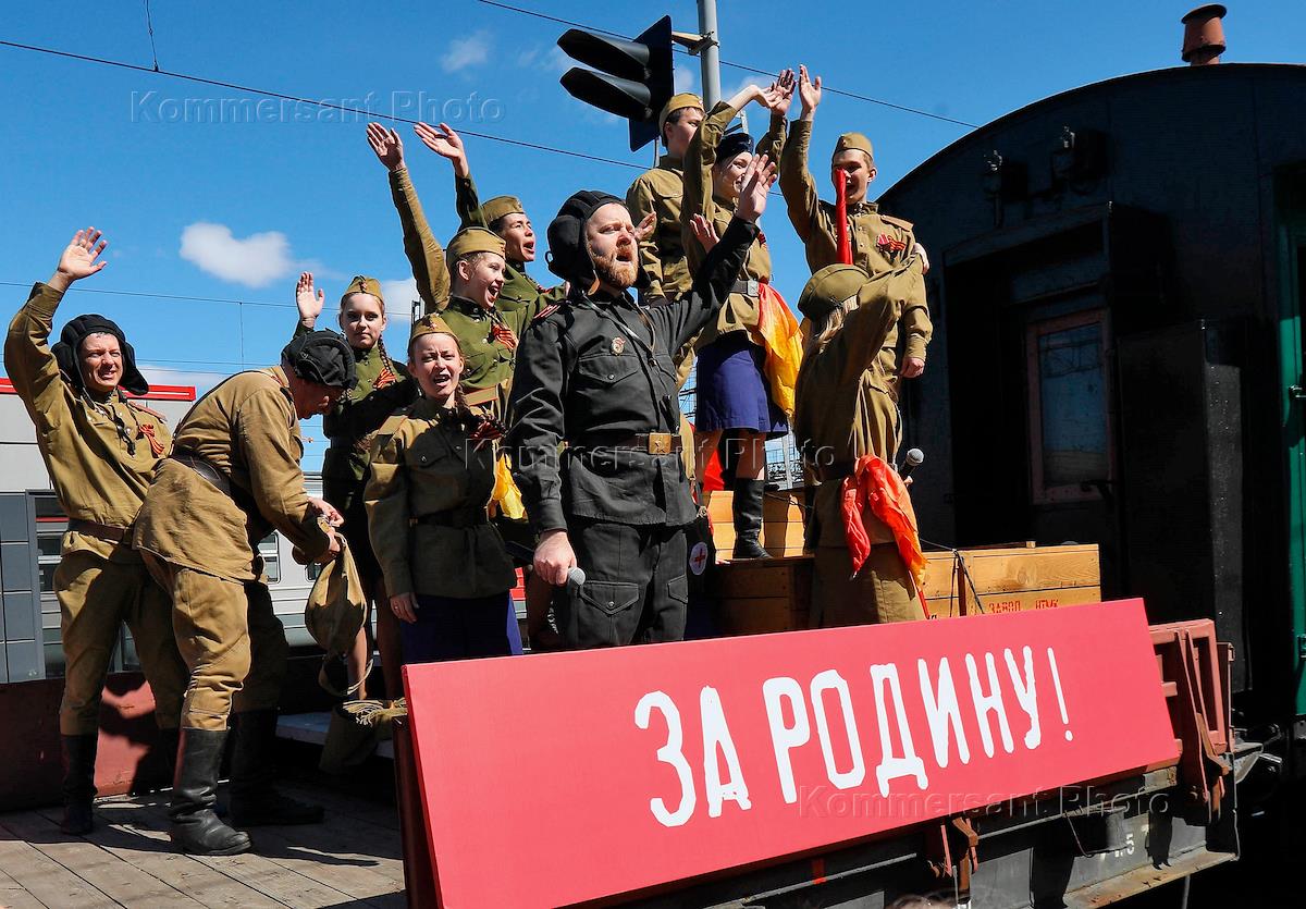 Церемония встречи ретро-поезда "Эшелон Победы" на железнодорожной станции…