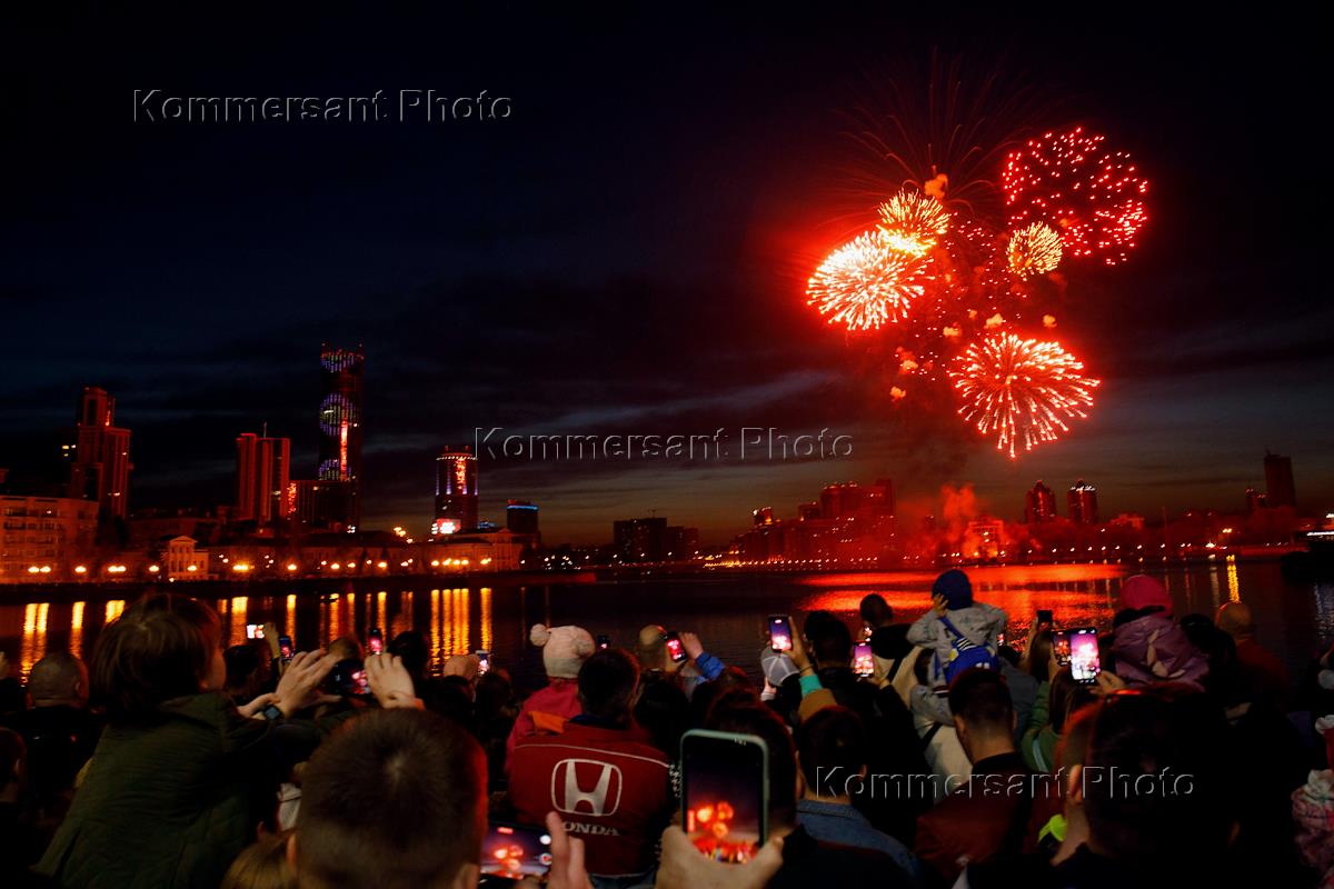 Празднование 77-ой годовщины Победы в Великой Отечественной войне в Екатеринбурге. Салют над…