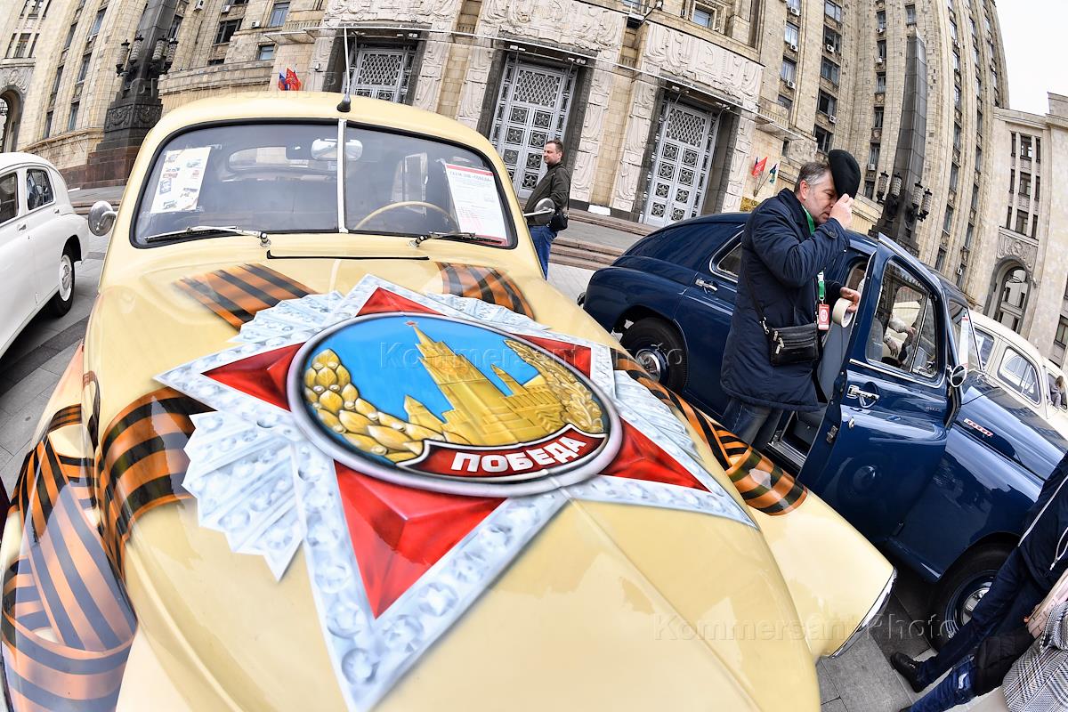 Выставка автомобилей марки "Победа" у главного здания МИД РФ.