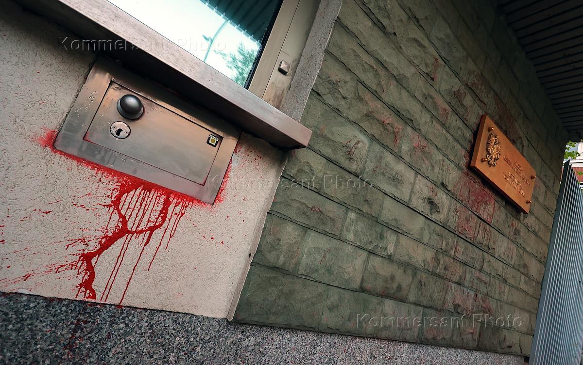 Посольство Польши в Москве облили краской.