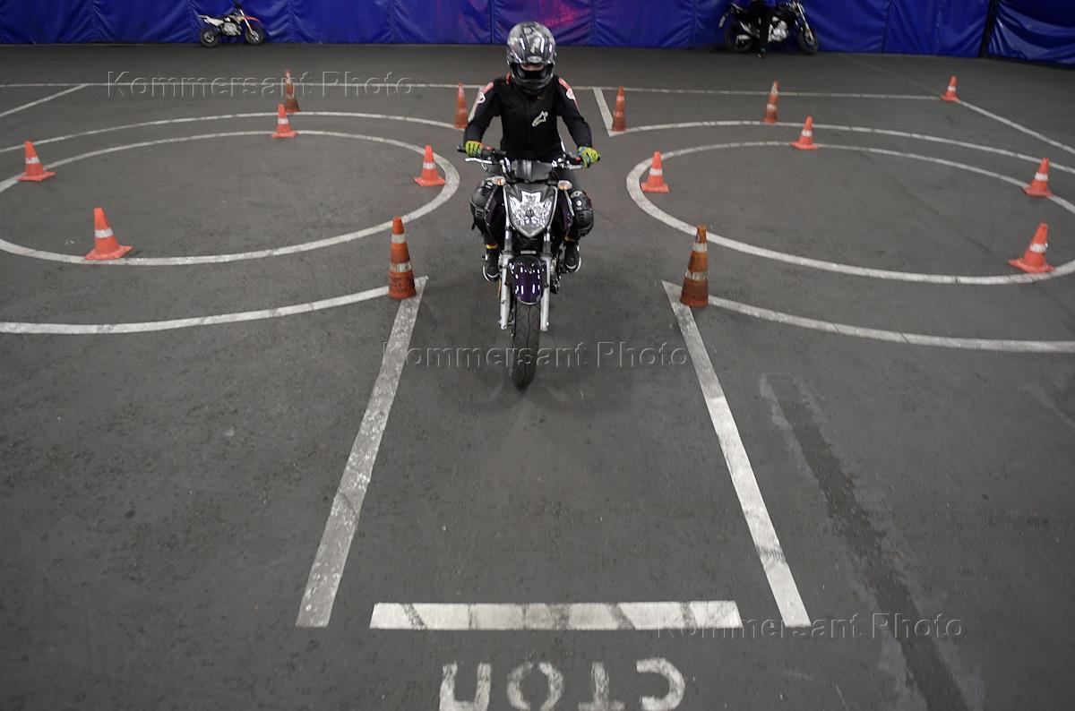Работа мотошколы на базе Учебно-курсового комбината ГУП "Мосгортранс" на Нагорной.