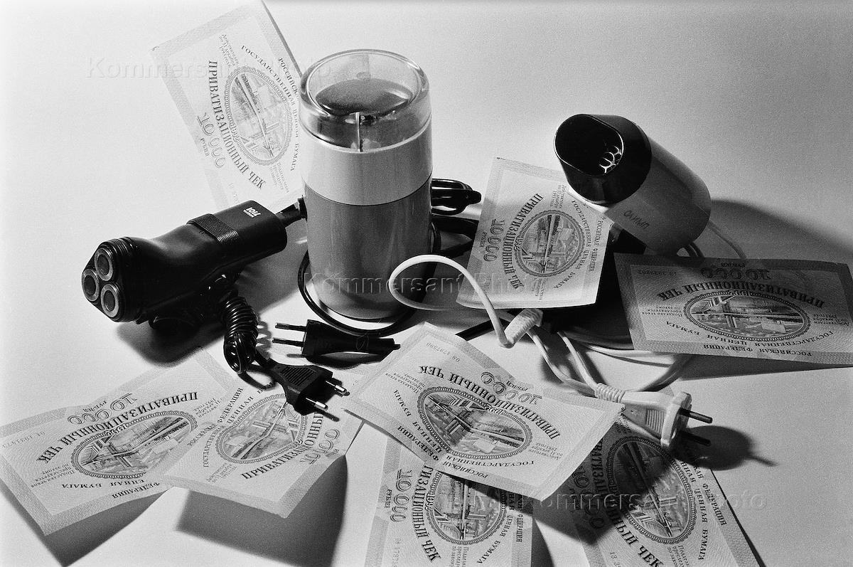 Жанровая фотография. Натюрморт на тему приватизации. Бытовые приборы (электробритва, кофемолка и фен…